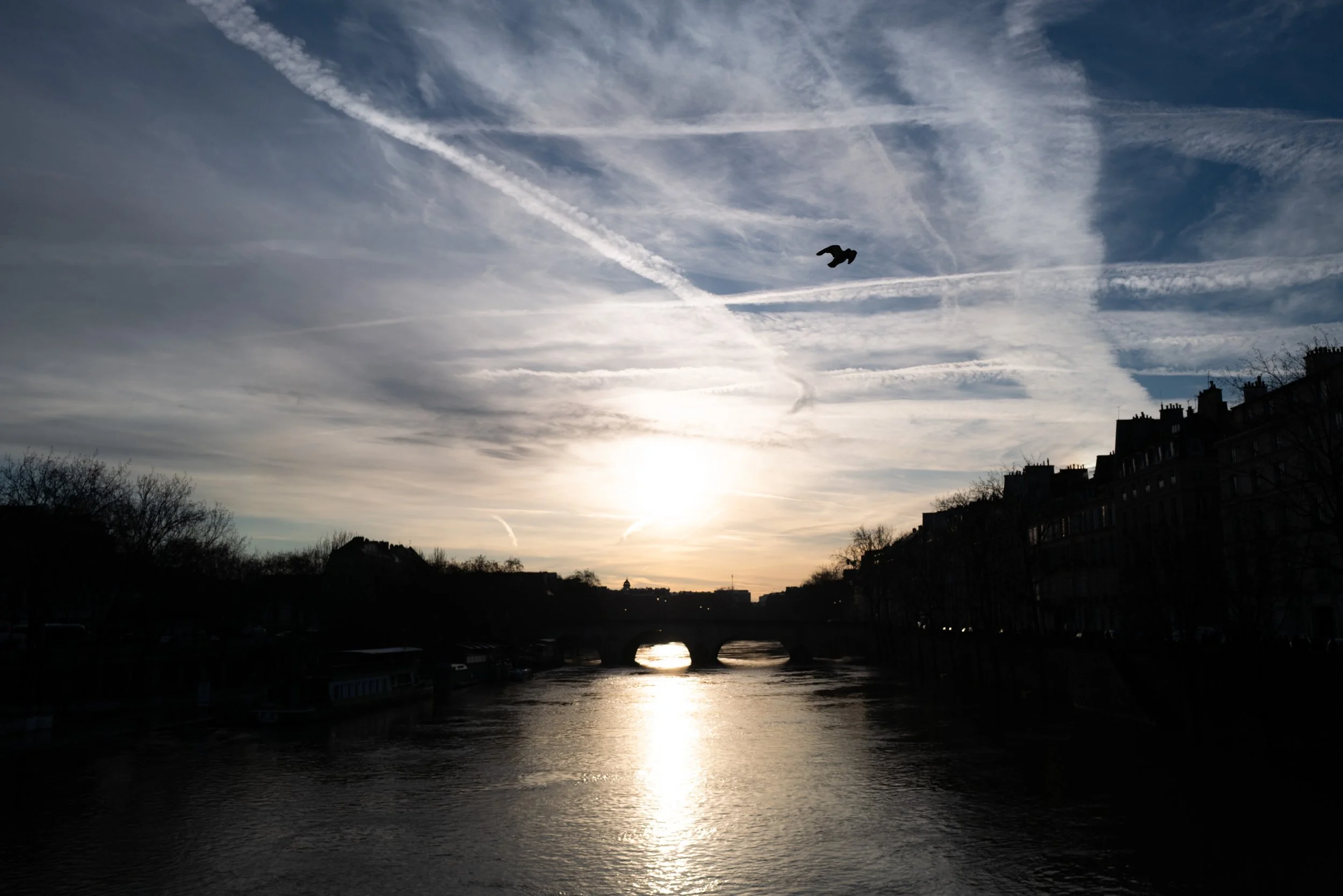 Au programme ce mois-ci : beaucoup de ciels, un lit sur la Seine, quelques ombres et des oiseaux.